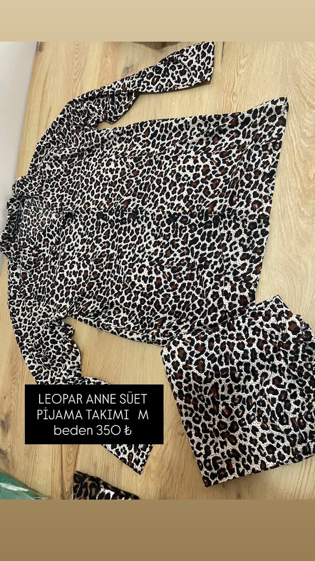 Leopar desenli, uzun kollu, kısa paçalı, bol kesim kadın pijama takımı. Rahat ve sokak stili uyumlu.
