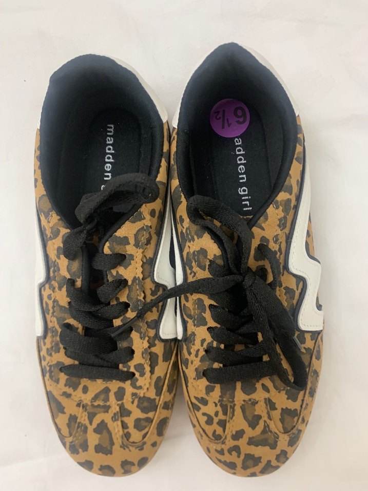 Kahverengi leopar desenli kadın spor ayakkabısı, platform topuklu ve spor ve sokak tarzı için uygundur.