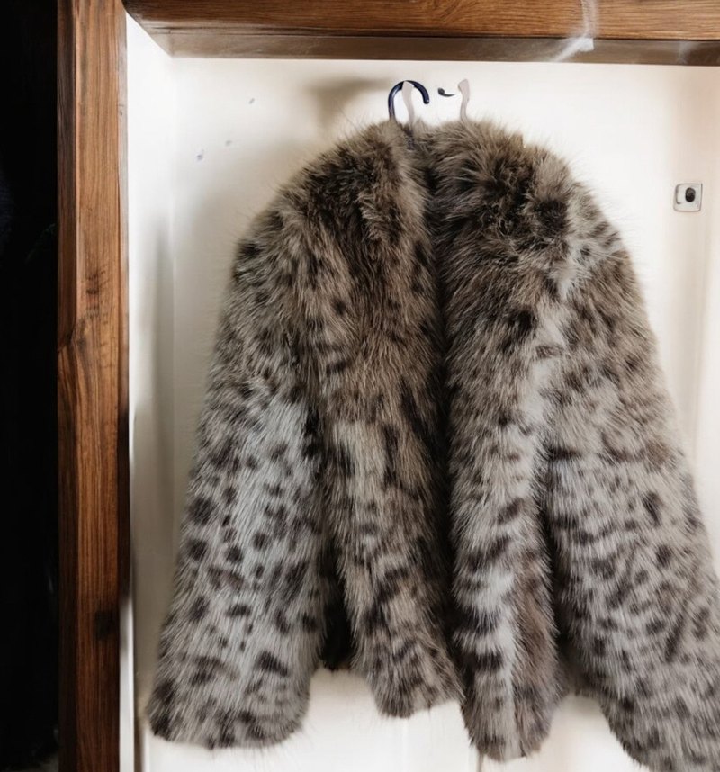 Leopar desenli suni kürk kadın ceketi. Hiç kullanılmadı etiketli kalçayı kapatmaz