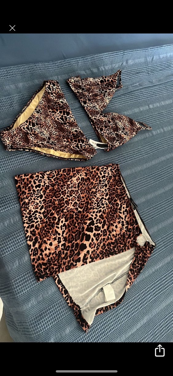 Leopar Desenli Kahverengi Drapeli bikini takım
