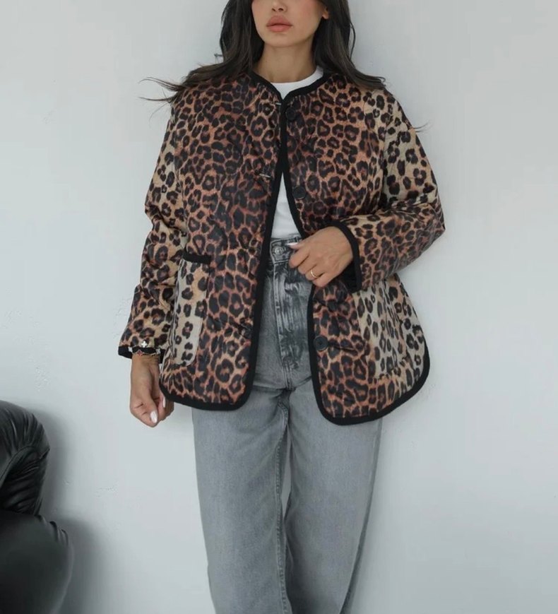 Leopar Desenli Kahverengi Kadın Ceket