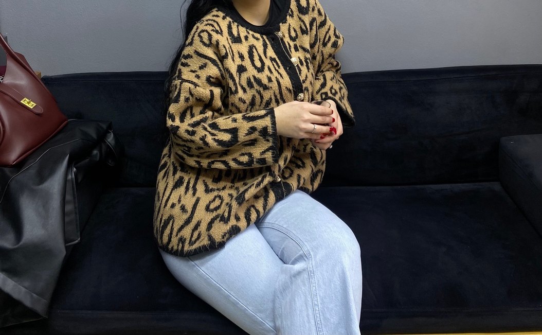 Tertemiz kullanılmış leopar hırka. Boyu kalçanın bi tık üstüne geliyor , kalıptan kalıba değişir.