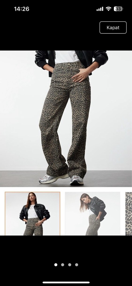 Kahverengi zebra desenli, midi boy, sentetik kumaştan yapılmış, günlük sokak stili için rahat kesim kadın jean