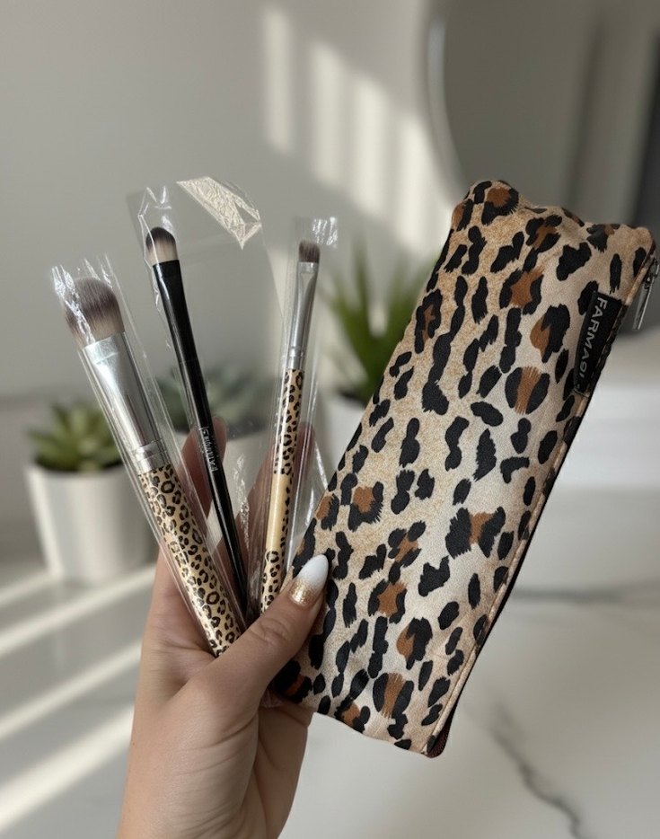 Leopar Desenli Kahverengi Makyaj Fırça Seti