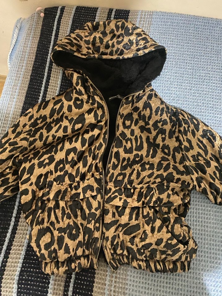 Leopar Desenli Kapüşonlu Kadın Ceket