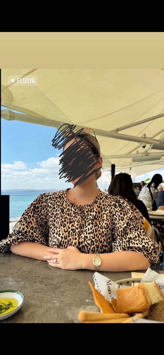 Alt pantolonu yırtıldı üstünü 2 kez giydim Kahverengi leopar desenli, yakalı ve kısa kollu kadın bluz. Kemer detayı ve bol kesimiyle sentetik kumaştan üretilmiştir.