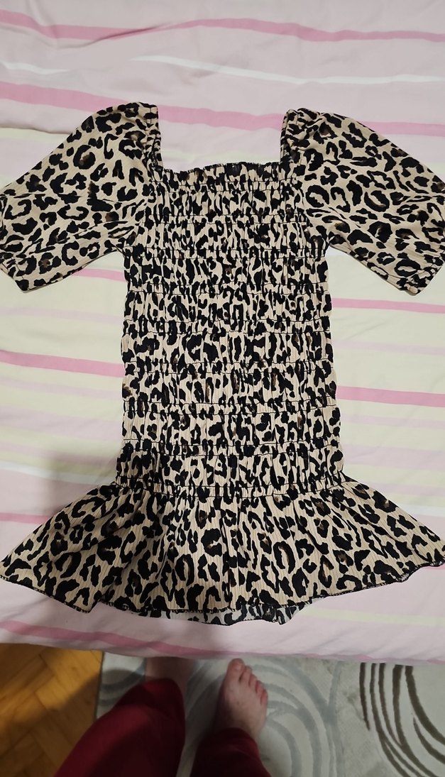 kısa kollu leopar desenli esneyebilen bluz. S ve M bedene uyumludur. hic giyilmedi.