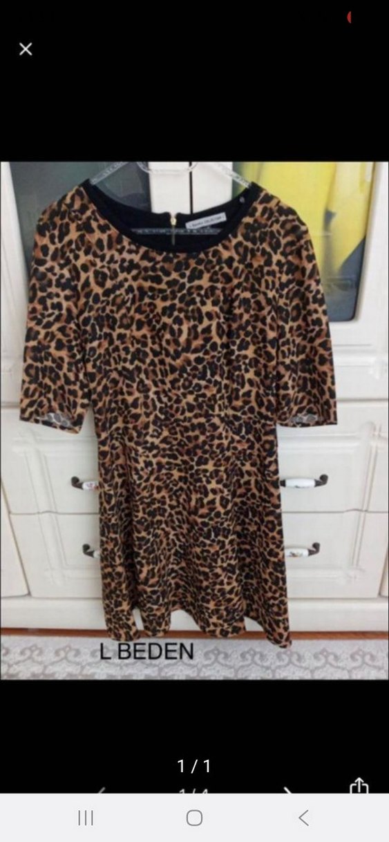 Leopar desenli, mini elbise belden oturmalı diz üstüdür