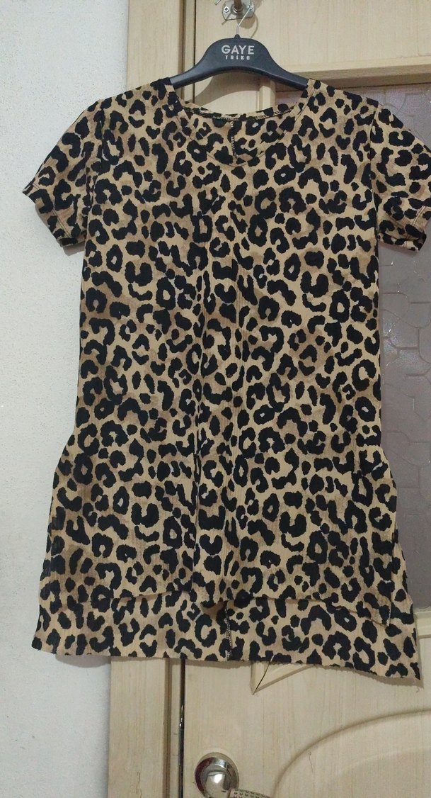 Leopar Desenli Kısa Kollu Mini tşhrt