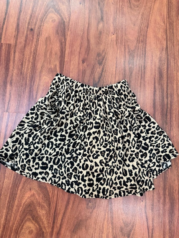 Leopar desenli, volanlı, bol kesim kısa şort etek. Efil efil bir modeldir