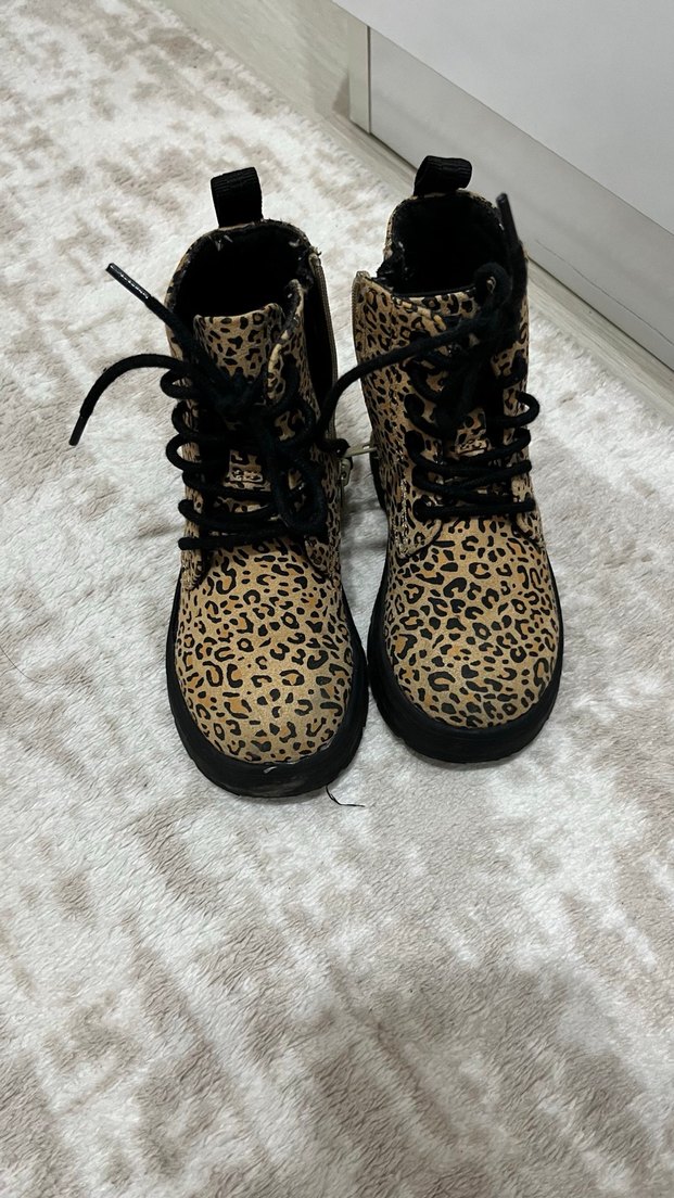Kürklü ve leopar desenli kahverengi kız botu, siyah bağcık ve kauçuk tabanlı, sokak stili havasında. Zara marka ayak numarasını ayarlayamadığımdan iki kez ancak giydirildi çok rahattı içi sıcacık tutar