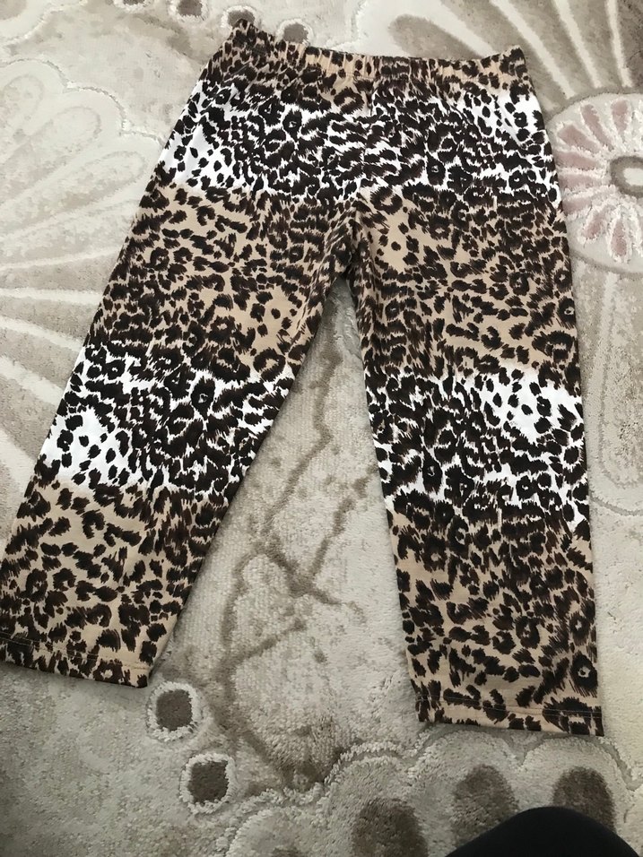 Leopar Desenli Kiz Cocuk Kumaş Pantolon