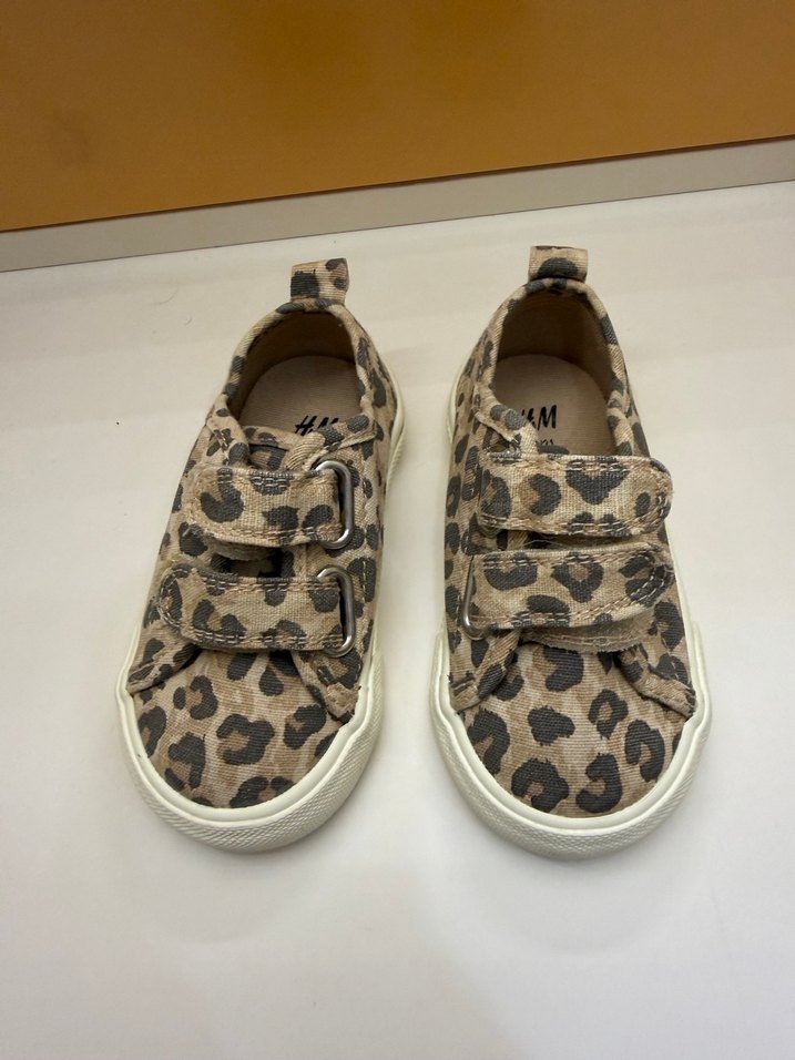 Kız çocukları için leopar desenli, kahverengi ve gri tonlarda, cırt cırtlı spor ayakkabılar. Kauçuk tabanlı, sokak modasına uygun rahat tasarım.