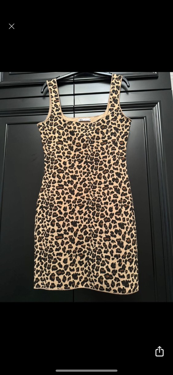 Koyu kahverengi leopar desenli dar kesim mini elbise