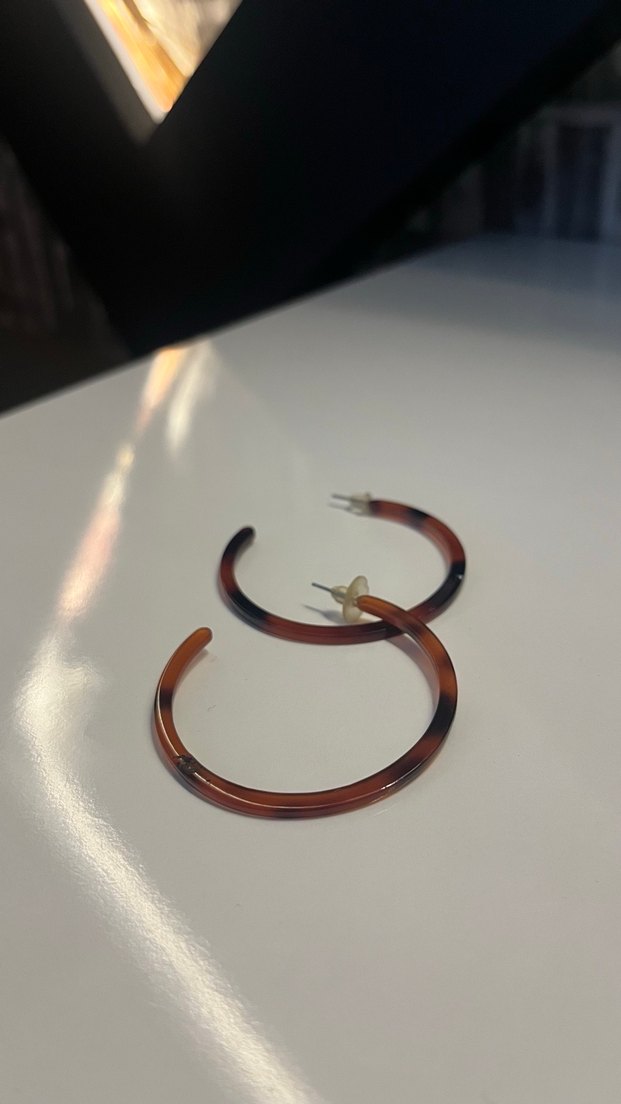 leopar desenli halka küpeler, tokalı ve minimalist bohem tarzda. Günlük kullanım için uygun, koyu tonlarda midi uzunlukta.