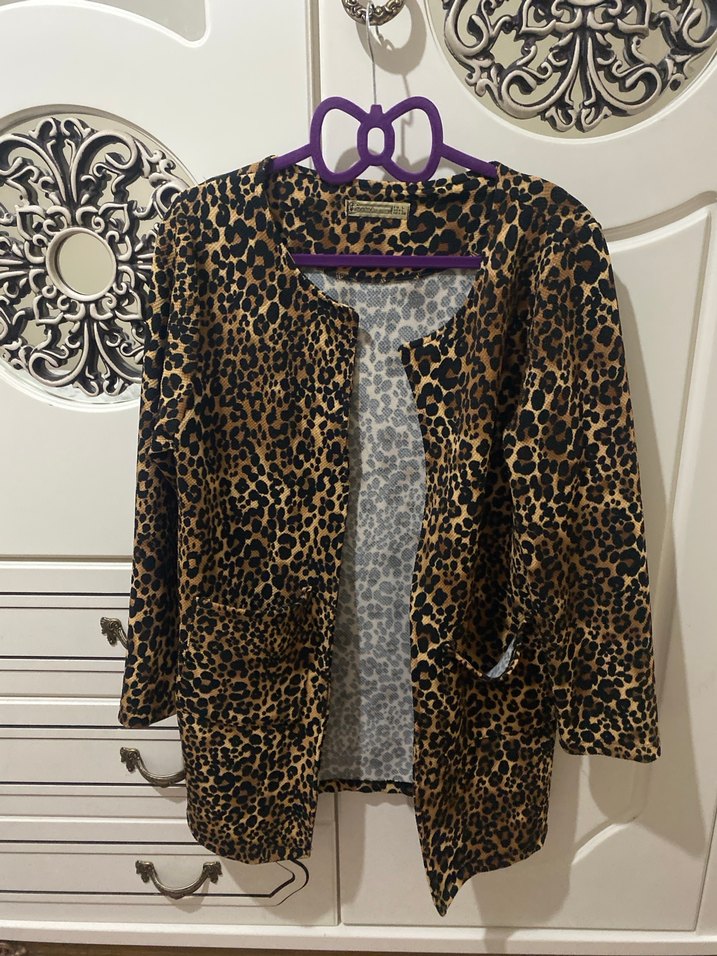 Leopar desenli, kürklü detaylı ve normal boy midi kaban. Uzun kollu, kesimi vücuda oturan ve yaka kısmı notched lapel tarzında.