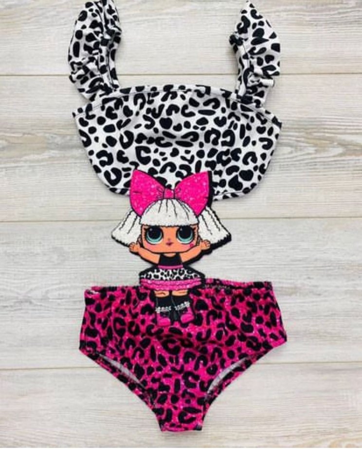 Leopar Desenli lol bebek Kız Çocuk mayokini Bikini