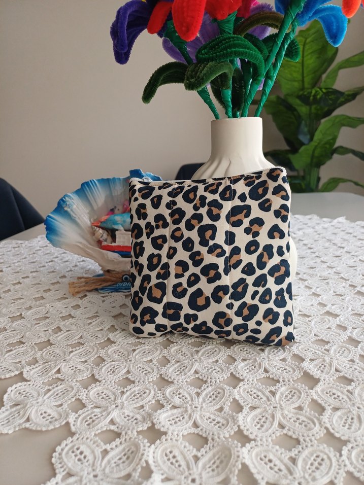 Sentetik kumaştan, renkli leopar desenli, bohem tarzda makyaj çantası, günlük kullanım için uygundur. Sadece makyaj çantası olarak değil düzenleyici olarakda kullanabilirsiniz. Boyut:15×15'dir. Yeni dikilmiştir. İçi astar ve elyaflıdır.