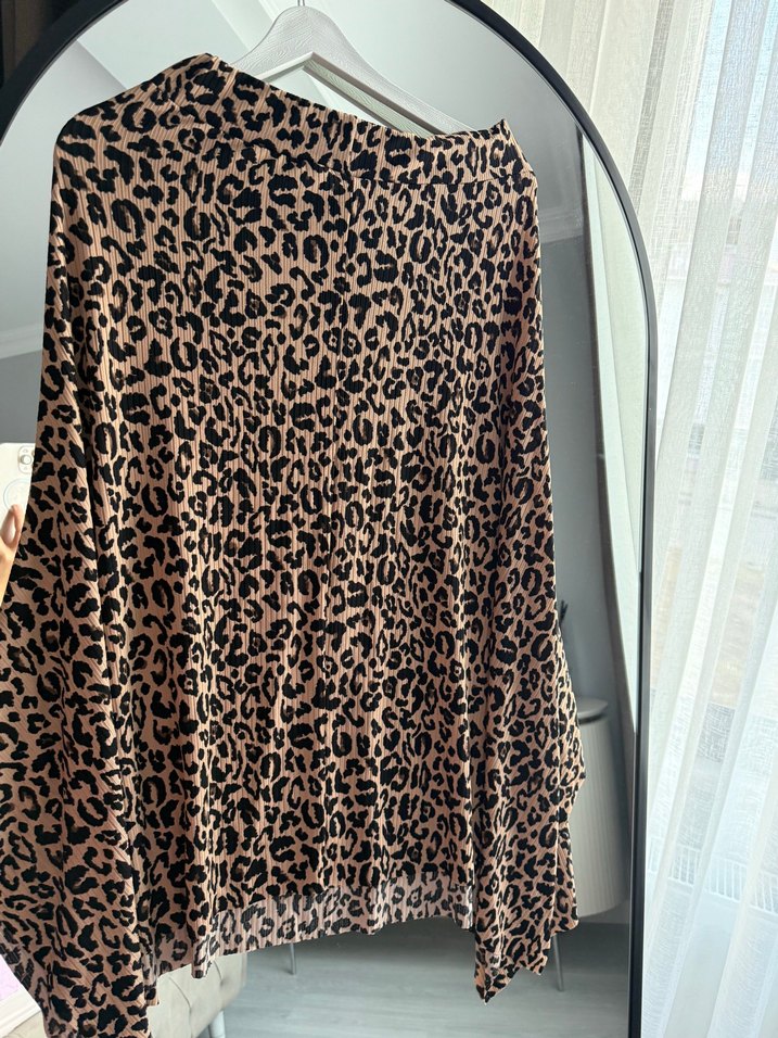 Koyu kahverengi leopar desenli, bol kesim etek Sentetik kumaştan, günlük sokak stiline uygun bohem ve retro tarzda.