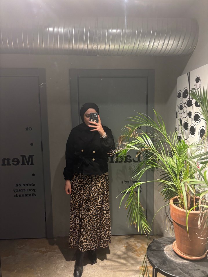 Siyah leopar desenli midi etek, rahat kesim ve sentetik kumaştan üretilmiştir. Günlük sokak stiline uygun, zahmetsiz şıklık sunar.