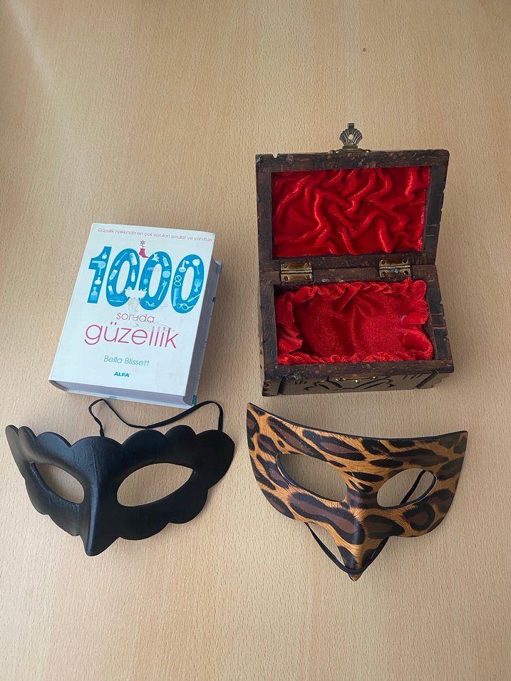 Leopar desenli, fermuarlı mini deri maskeler, vintage tarzda romantik buluşmalar için uygun. Ahşap kutu ile birlikte.