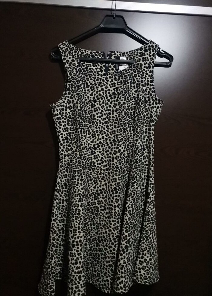 Leopar desenli, diz üstü, sırttan fermuarlı, 38 beden.