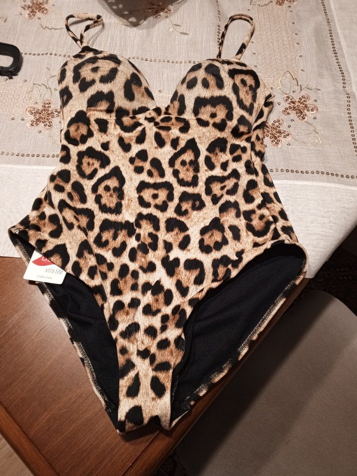 leopar desenli, ince askılı, kadın mayo. 36 beden