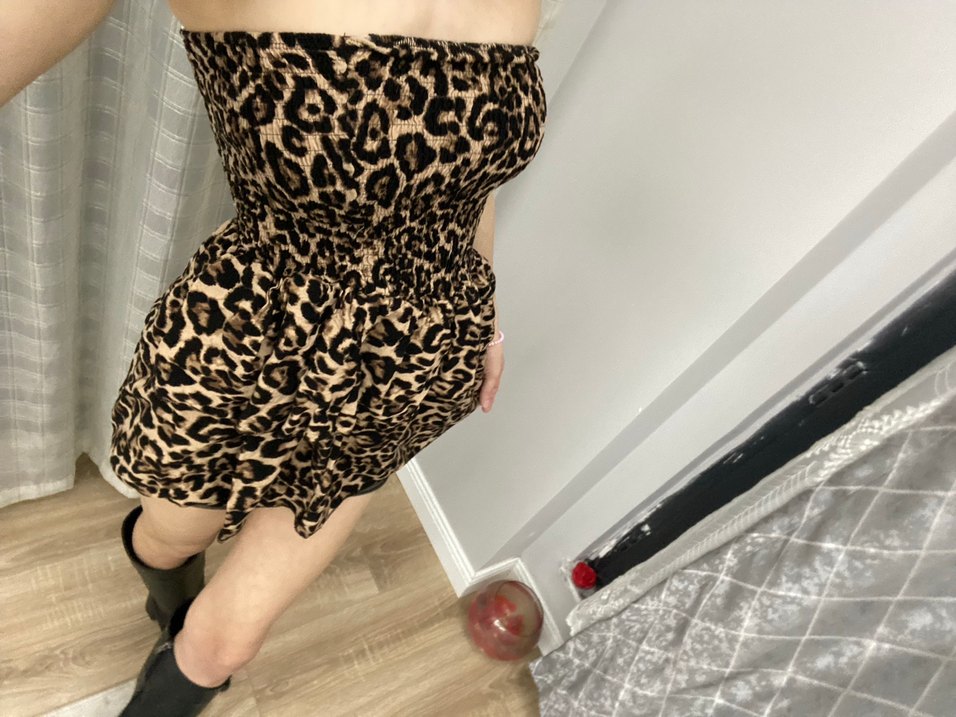 Leopar Desenli Mini Straplez Elbise