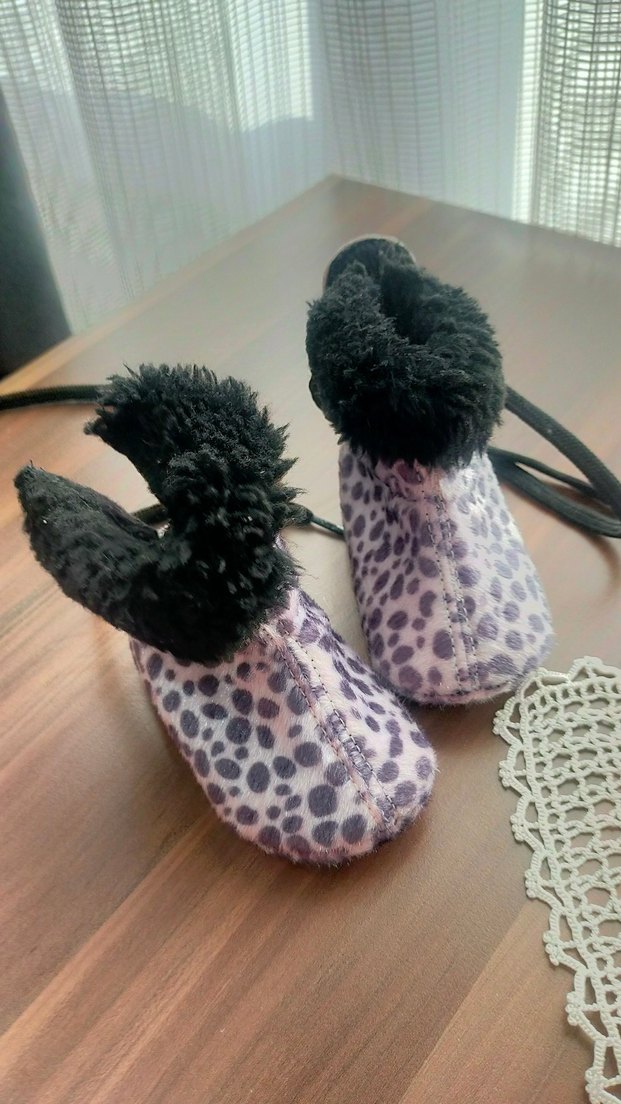 Leopar Desenli Mor Peluş Kız Ev Terliği