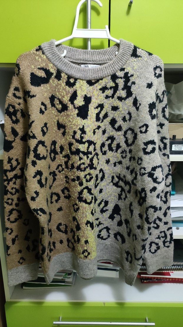Leopar desenli örgü erkek kazak, uzun kollu ve yuvarlak yakalıdır. Rahat kesimi ve normal uzunluğu ile konforlu bir sokak stili sunar. son fiyattır
