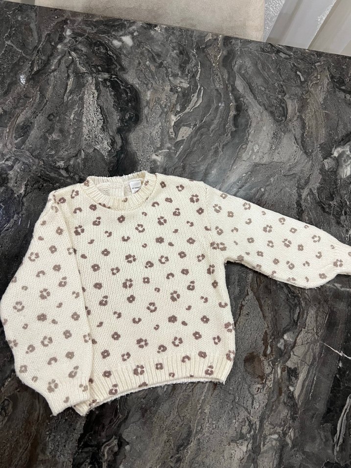 Örgü kumaştan yapılmış, leopar desenli, bol kesim ve uzun kollu kız kazak. Bohem ve retro tarzlara uygundur.