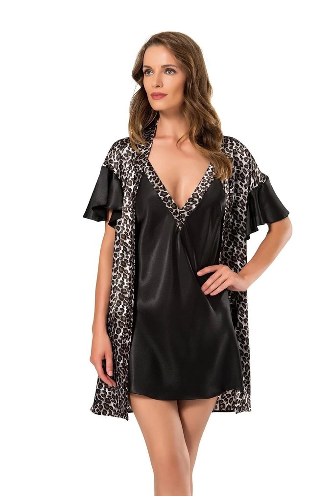 Leopar Desenli Parlak Mini Kadın Gecelik Takımı