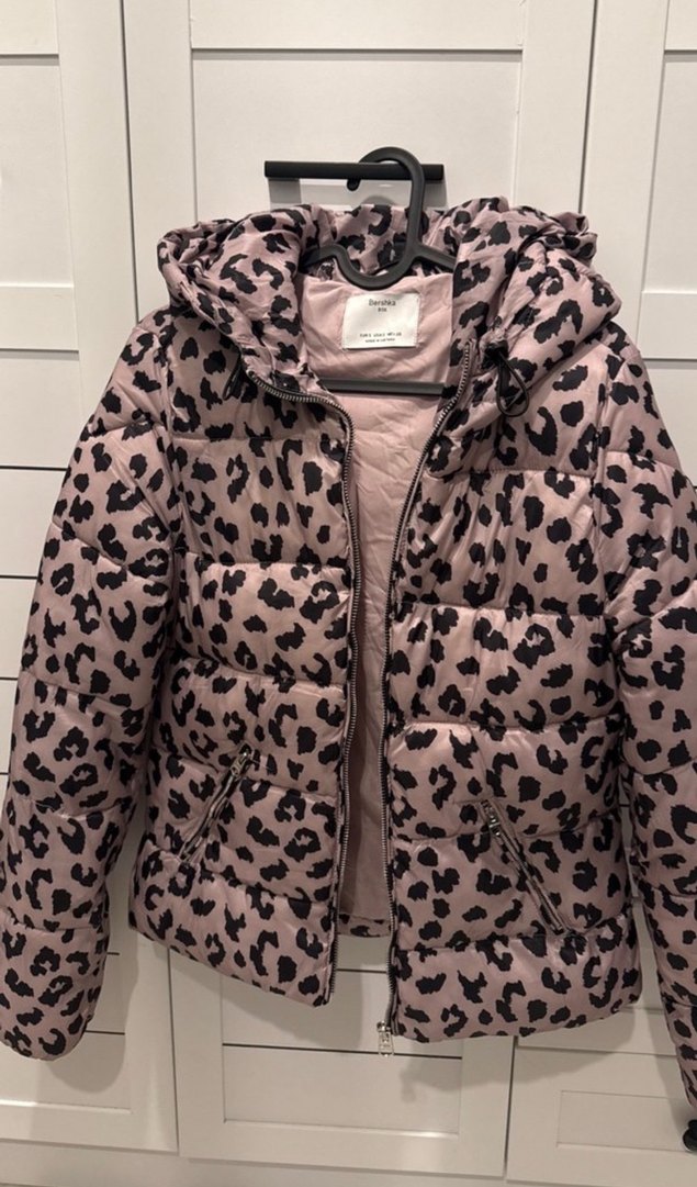 Leopar Desenli Pembe Kadın Mont. Çok az giyildi. Hiç bir deformesi yok.