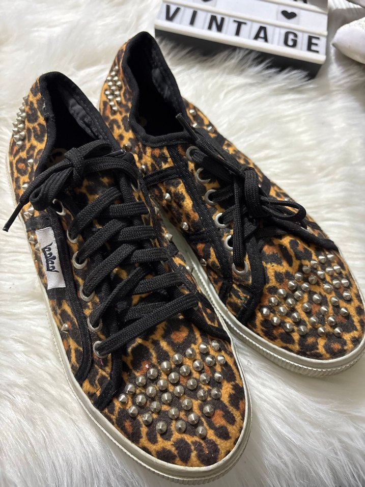 Kahverengi, leopar desenli, pul ve metal çivili detaylara sahip platform topuklu, lastik tabanlı kadın spor ayakkabısı. Üzerinde "TAGE" etiketi bulunur. Bambi marka 40 numara. Sayfamda çok sayıda Shein ve Primark marka ürünler mevcuttur onlara da bakabilirsiniz