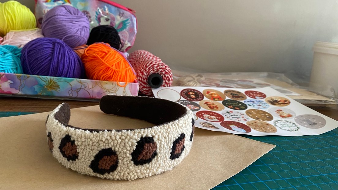 Punch nakışıyla leopar desenli el emeği taç