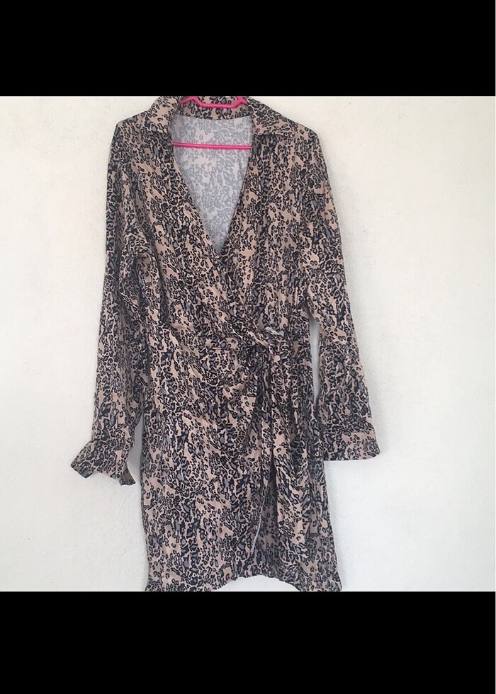 Leopar desenli saten elbise