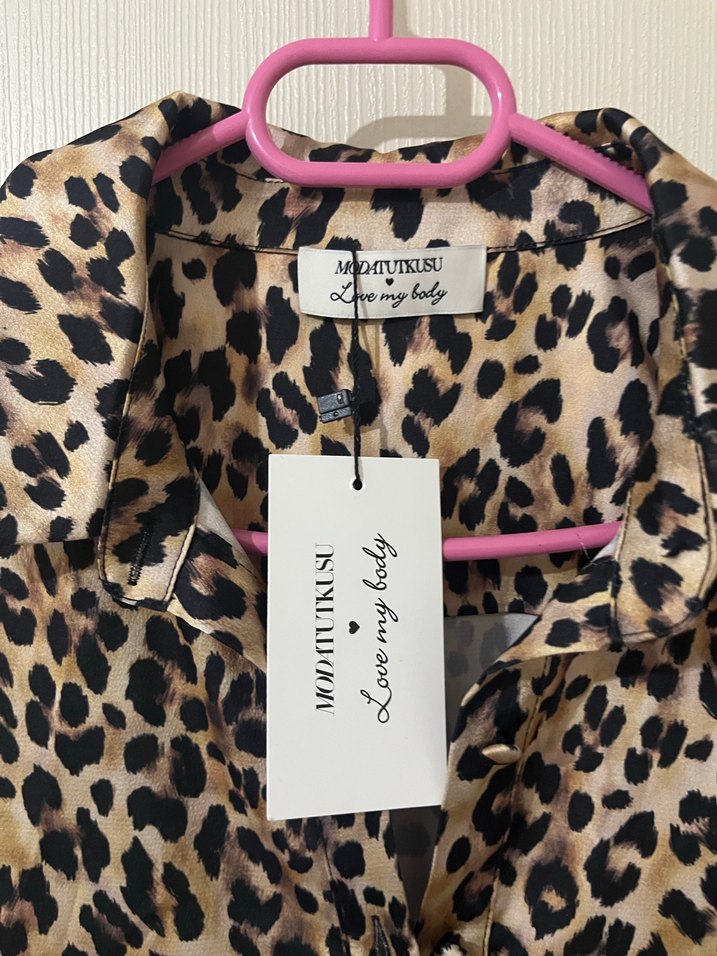 leopar desenli saten tulum hiç giyilmedi kemerli ve çok tarz duruyor