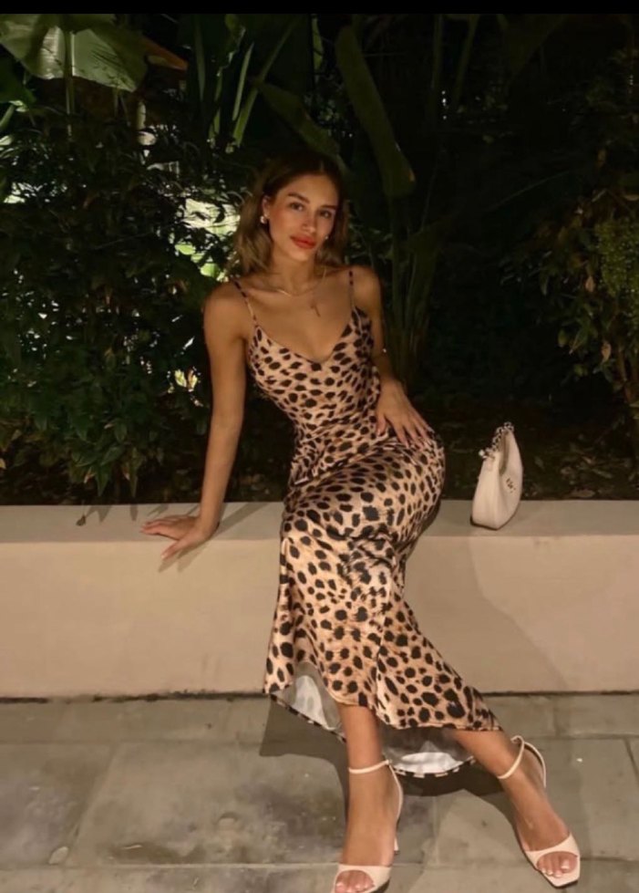 Leopar Desenli Saten Uzun Zara Elbise