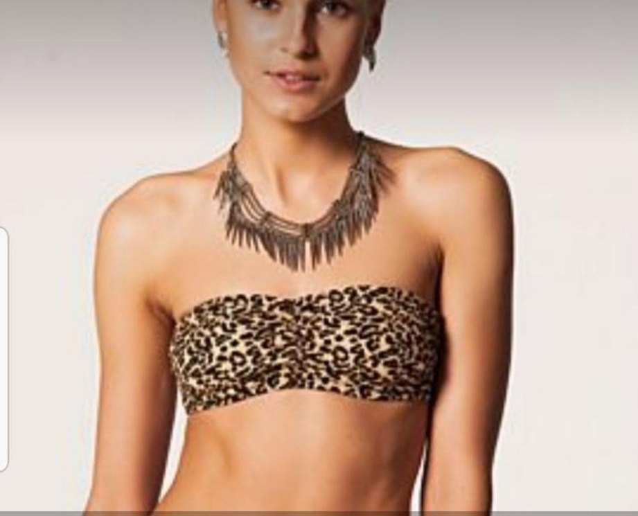 Leopar Desenli Straplez Bikini Üstü