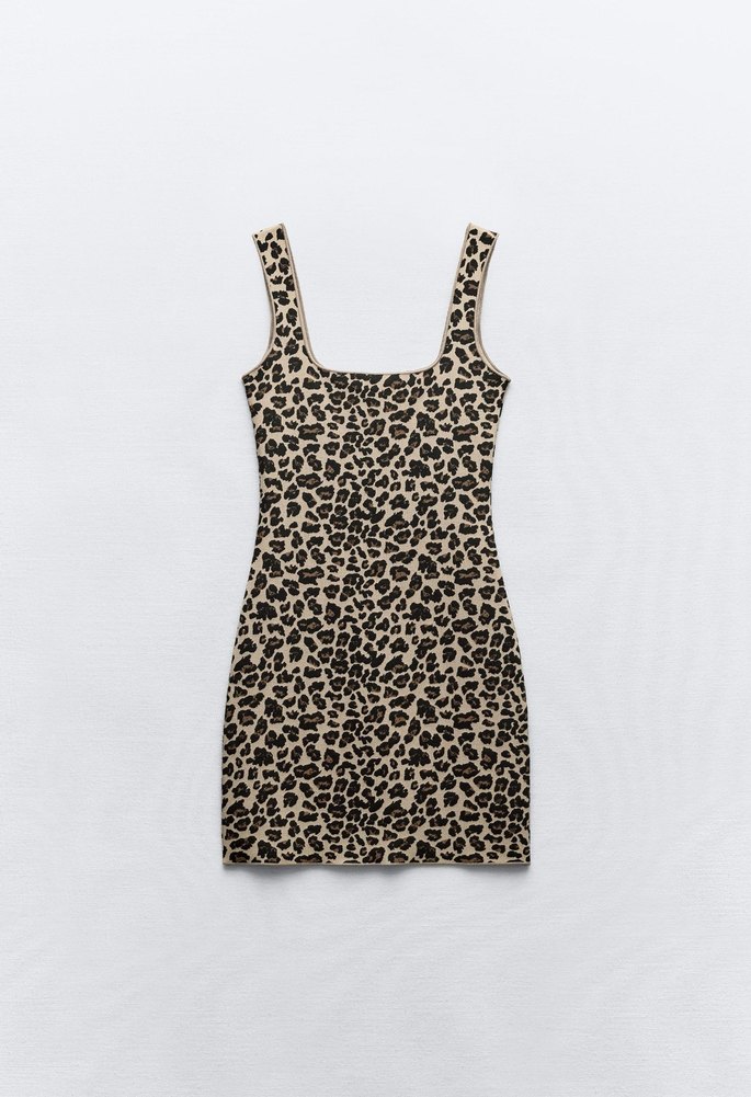 Leopar desenli, vücuda oturan mini elbise. Yumuşak sentetik kumaştan, günlük kullanıma uygun. Hiç giyilmedi