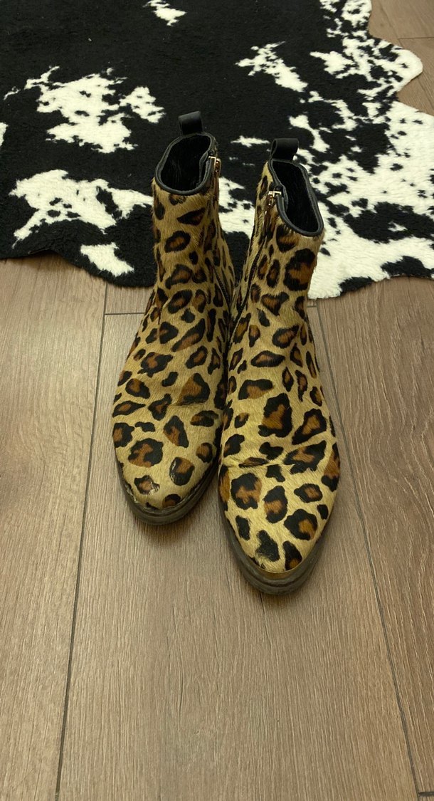 Leopar Desenli Süet Kadın Botlar