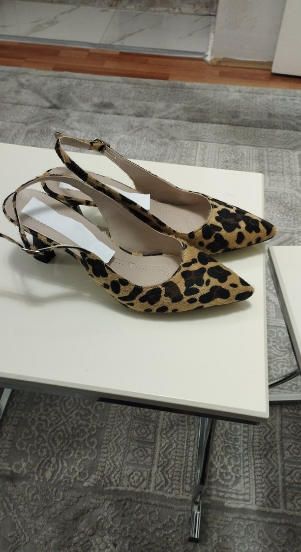 Bej süet, leopar desenli, tokalı bantlı kadın stiletto. Günlük kullanıma uygun, çağdaş Paris tarzı.