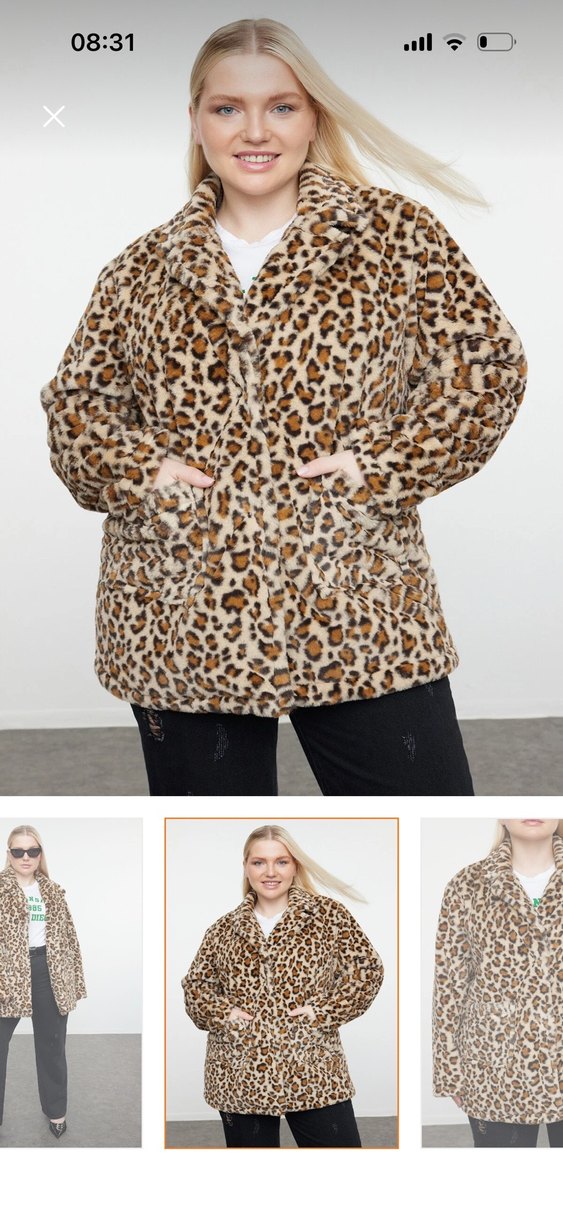 Leopar desenli, uzun kollu, normal uzunlukta kahverengi suni kürk mont. Rahat kesimi ve yumuşak sentetik kumaşıyla günlük rahat kullanıma uygundur.