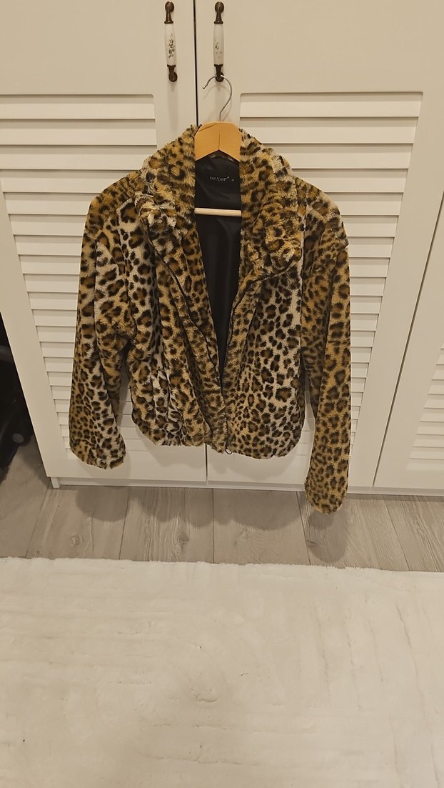 2 kez giyildiLeopar desenli, suni kürk, midi boy, uzun kollu, yakalı, fitted kesim ceket. Günlük kullanıma uygun sıcak ve şık bir parça.