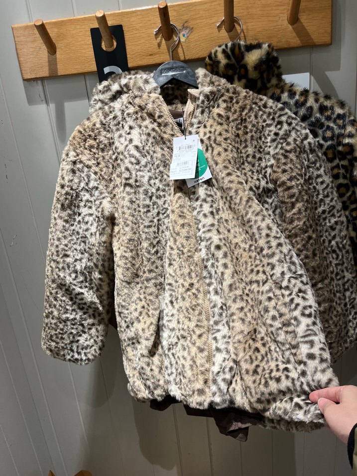 Leopar desenli, uzun kollu ve normal boyda suni kürk ceket. Salaş kesim ve yakası kesik detaylı, günlük rahat stil için uygundur.