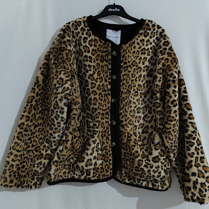 Bu bol kesim midi ceket, leopar desenli yumuşak suni kürk kumaştan yapılmıştır. Uzun kollu, yuvarlak yakalı ve düğmeli, bohem ve retro tarzları birleştirir.