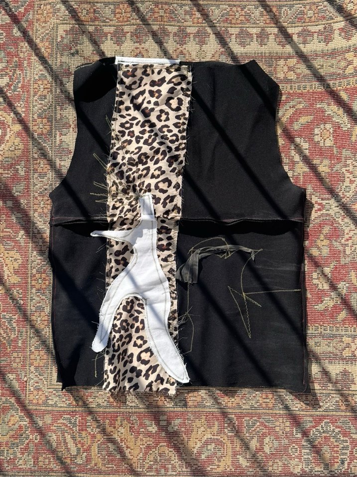 Leoparlı Siyah sentetik kumaş ve mini kısa kesimle sokak stiline uygun