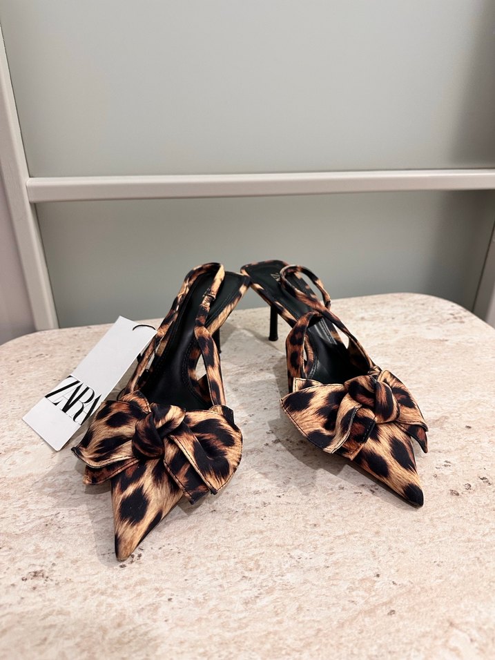 Kahverengi leopar desenli, tokalı stiletto. Sentetik kumaştan, sivri burunlu ve çağdaş tasarıma sahip. Günlük kullanım için uygun.