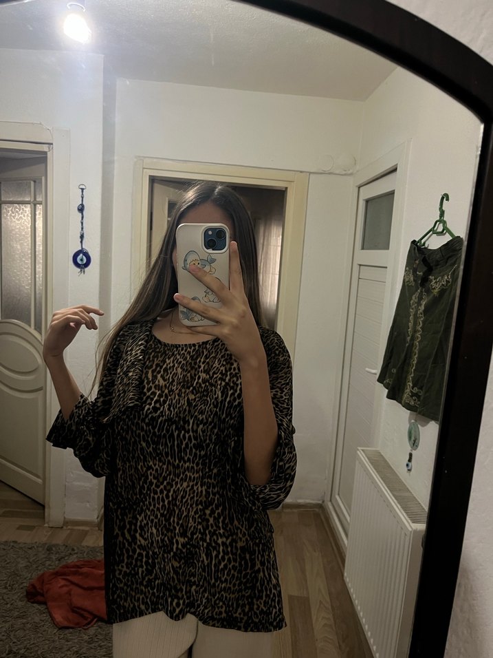 Leopar Desenli Transparan Kadın Bluz