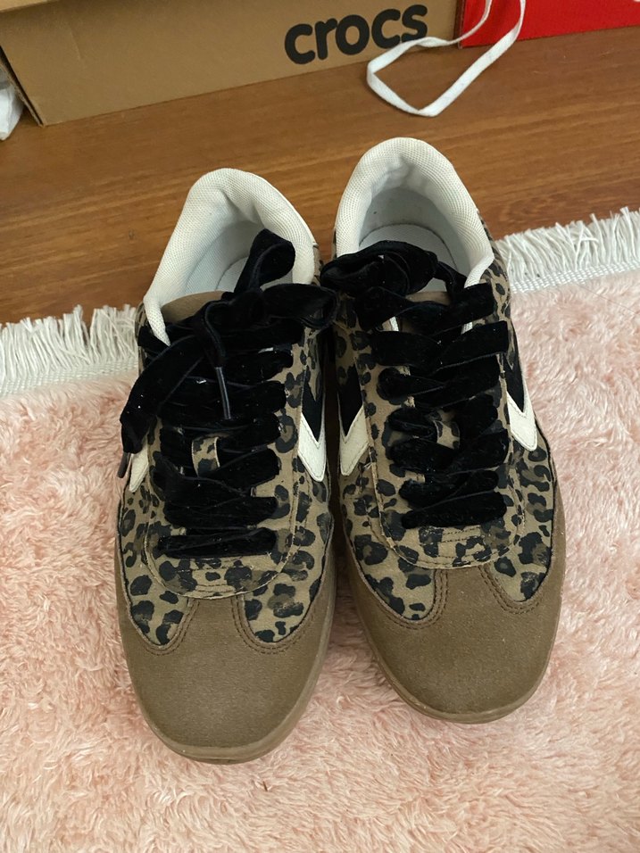 Leopar Desenli Tüylü Topuklu Spor Ayakkabı